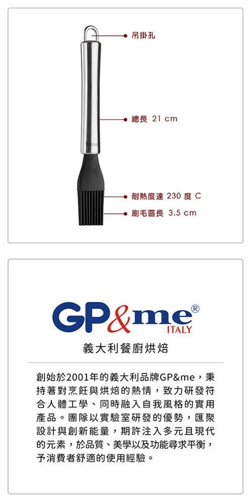 創始於 2001 年的義大利品牌 GP&me,秉持著對烹飪與烘焙的熱情,致力研發符合人體工學、同時融入自我風格的實用產品。團隊以實驗室研發的優勢,匯聚設計與創新能量,期許注入多元且現代的元素,於品質、美學以及功能尋求平衡,予消費者舒適的使用經驗。