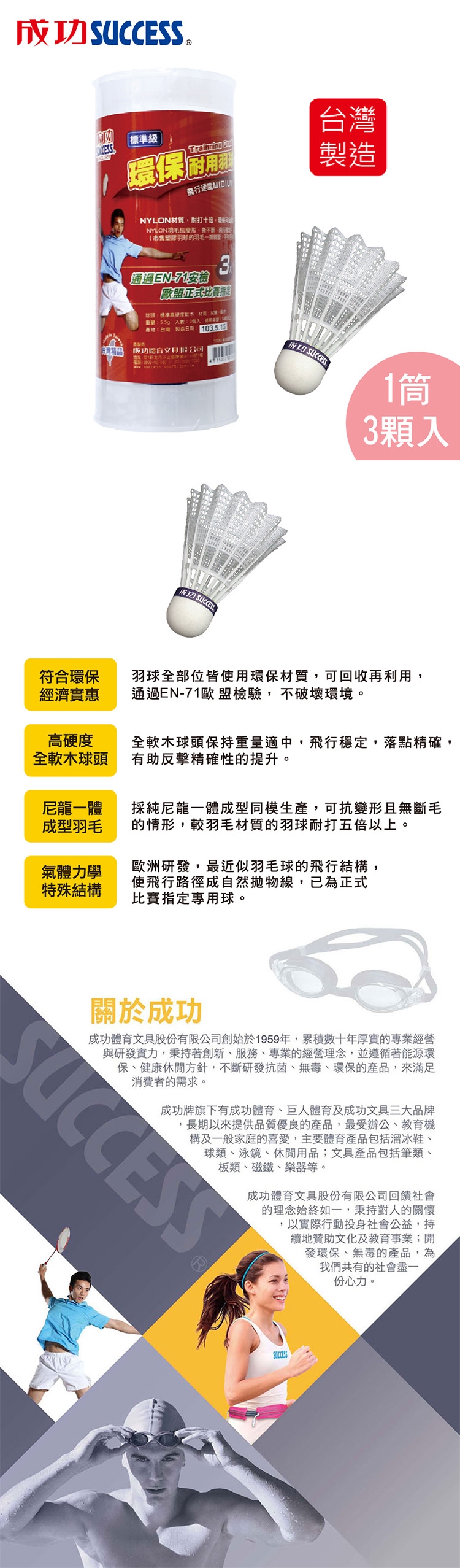 成功SUCCESS 標準級耐用羽球(1筒3顆入)S2243 台灣製