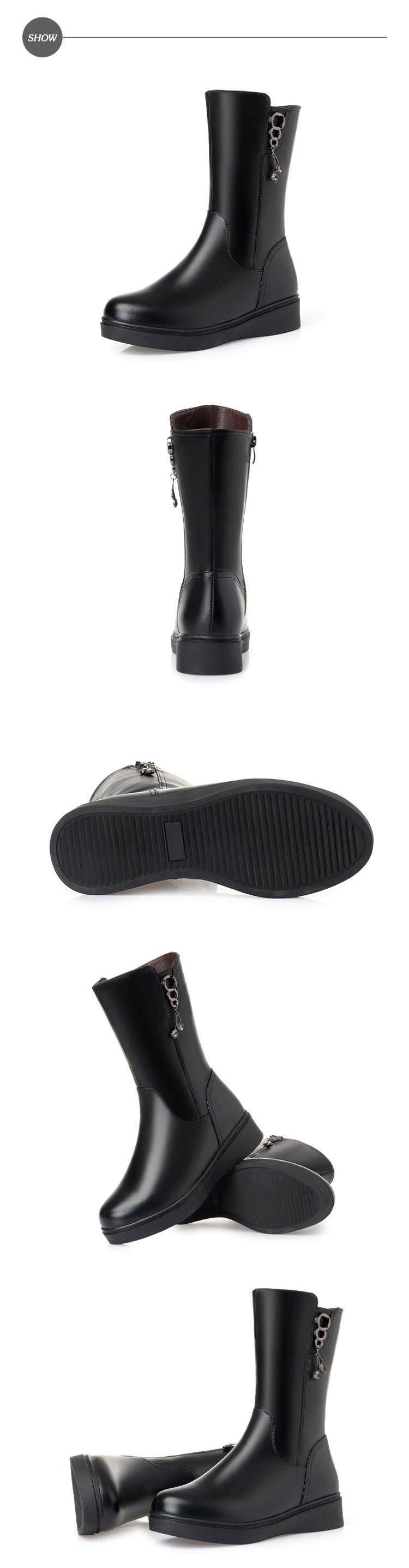 【MOM】中筒靴 厚底中筒靴/真皮氣質小圓珠流蘇釦飾舒適厚底中筒靴 黑