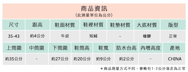 2.鞋類商品依功能及用途之不同,鞋底各有其止滑係數之個別不同,使用鞋類商品請用於正常平坦之路面,非雨鞋或雨靴類商品,請避免穿著於下雨濕滑路面上行走。