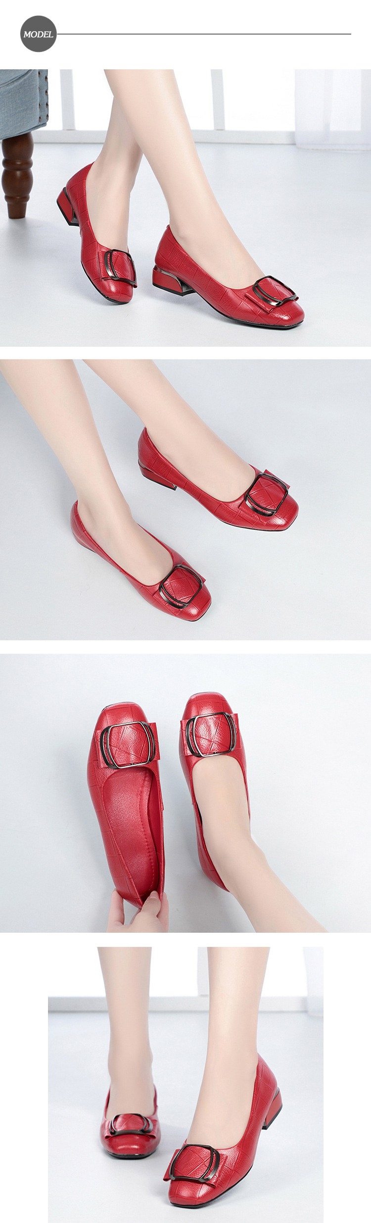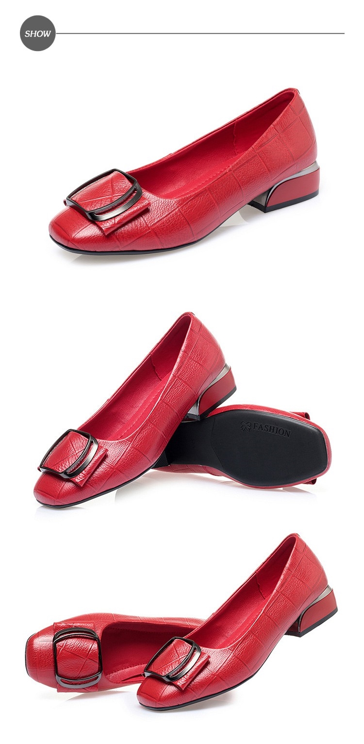 【MOM】跟鞋 粗跟鞋/真皮小方頭格子壓紋蝴蝶結造型粗跟鞋 紅
