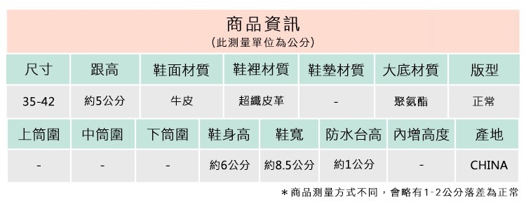 2.鞋類商品依功能及用途之不同,鞋底各有其止滑係數之個別不同,使用鞋類商品請用於正常平坦之路面,非雨鞋或雨靴類商品,請避免穿著於下雨濕滑路面上行走。
