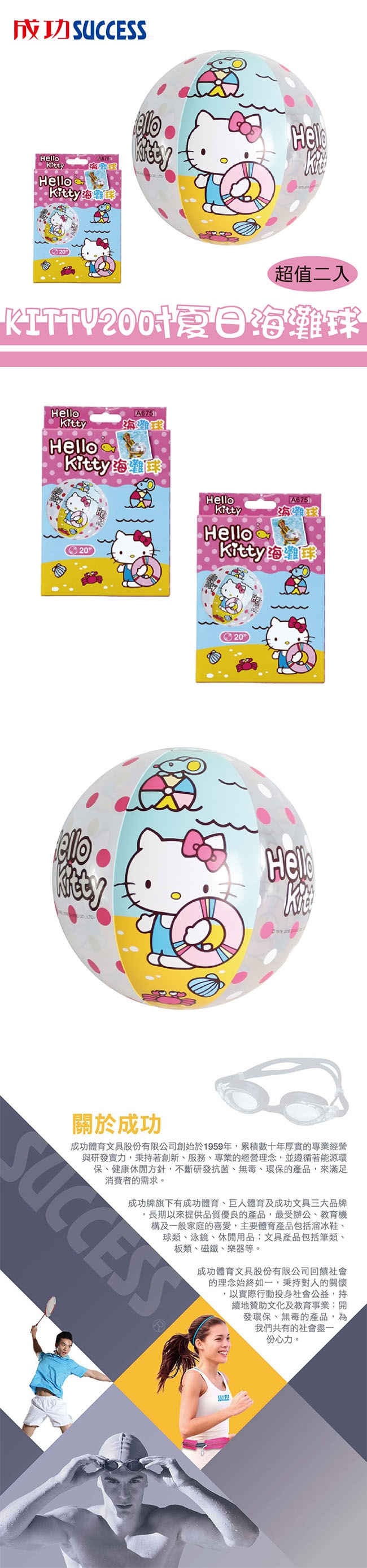 成功 KITTY20吋夏日海灘球 A675超值二入 正版授權