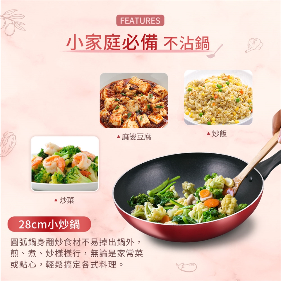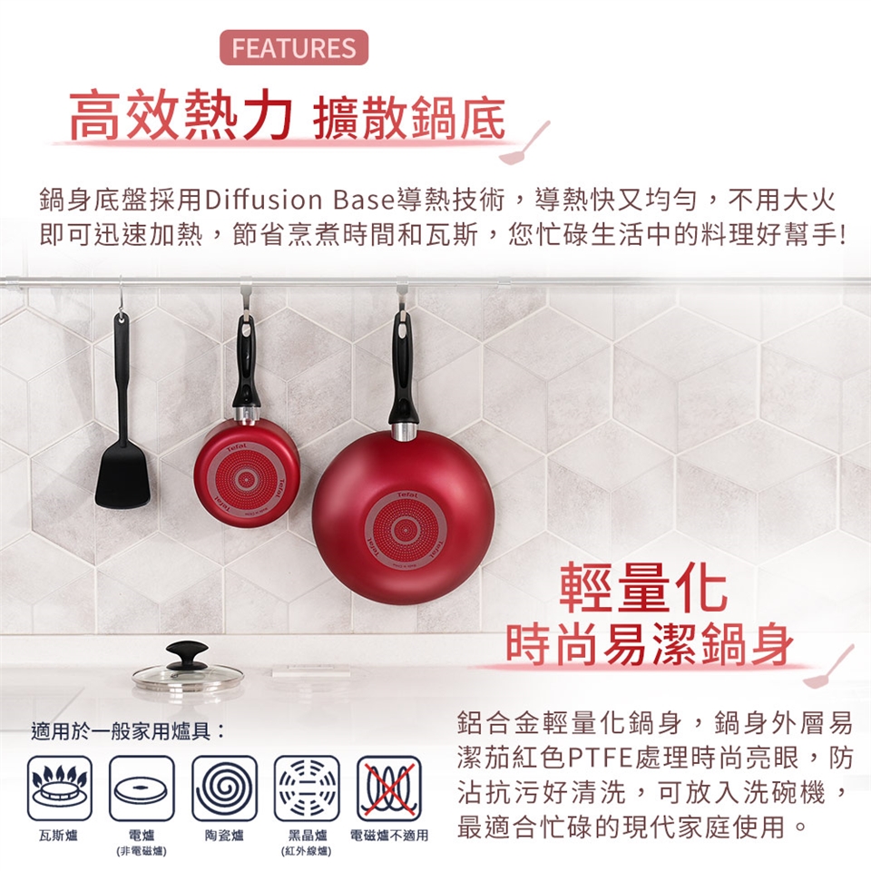 Tefal法國特福 彩盒包裝 喜氣紅系列 不沾鍋四件組 (28cm炒鍋+16cm湯鍋+16cm鍋蓋+鍋鏟)