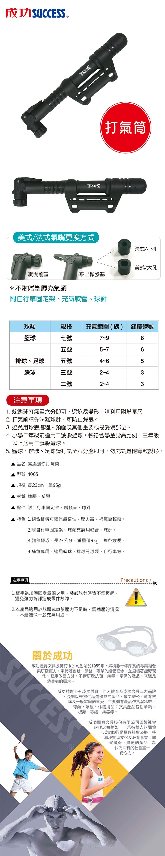 成功SUCCESS 23cm高壓迷你打氣筒4005