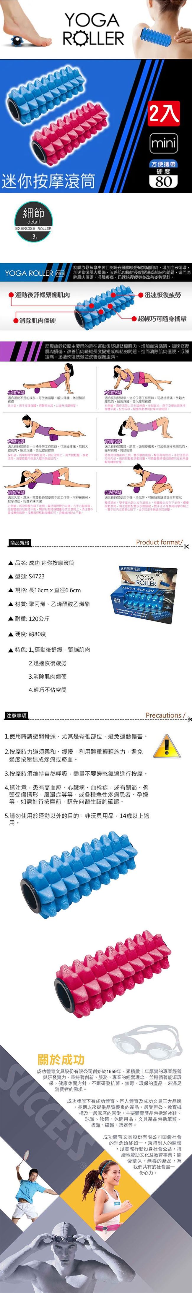 成功SUCCESS 迷你按摩滾筒(硬度80)S4723超值二入 台灣製