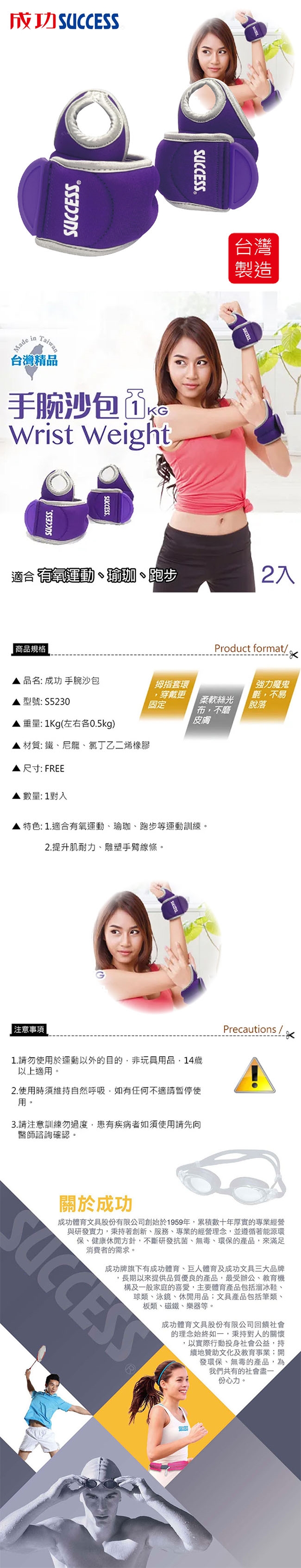 成功SUCCESS 1KG手腕沙包一組(左右各0.5KG)S5230台灣製