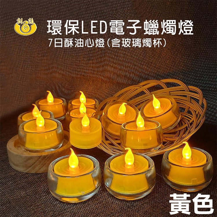 產品名稱:7日LED玻璃燭杯酥油心燈-12入組