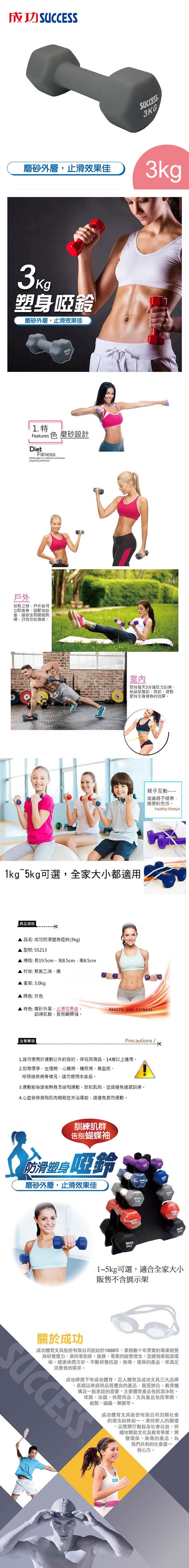 成功SUCCESS 3KG防滑塑身啞鈴 S5213