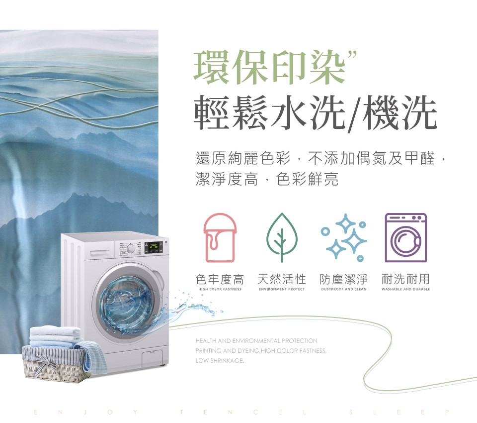 可水洗/不可烘乾/不可漂白/勿使用強力漂白清潔劑/浸泡時間請勿超過20分鐘/建議可放入大型洗衣袋後再清洗