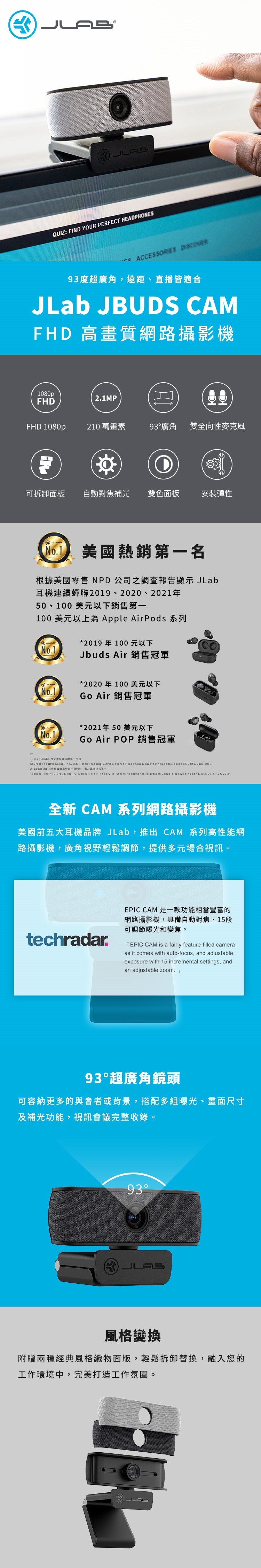 產品型號:JLab JBUDS CAM FHD 高畫質網路攝影機