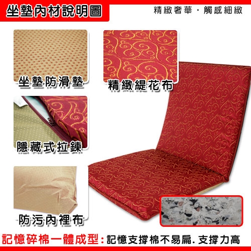 內材則採用台灣製造高密度高支撐的記憶聚合棉,彈性佳支撐好不易扁!且採用高級緹花布料,非一般的PU泡棉的不透氣,可拆洗!耐用不易變扁!
