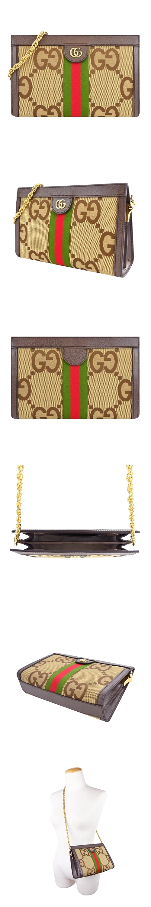Gucci 經典Ophidia Jumbo GG帆布皮革飾邊手拿/肩背包(烏木色)