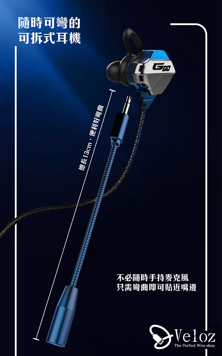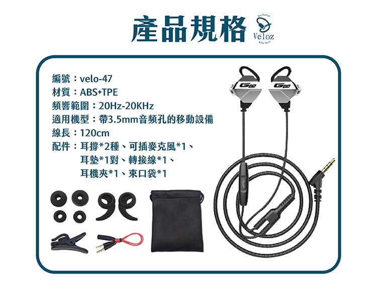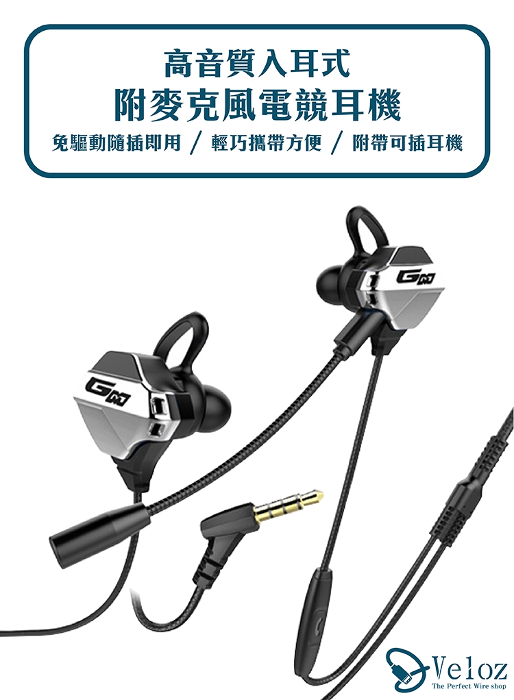 【Veloz】高音質入耳式附麥克風電競耳機(velo-47)