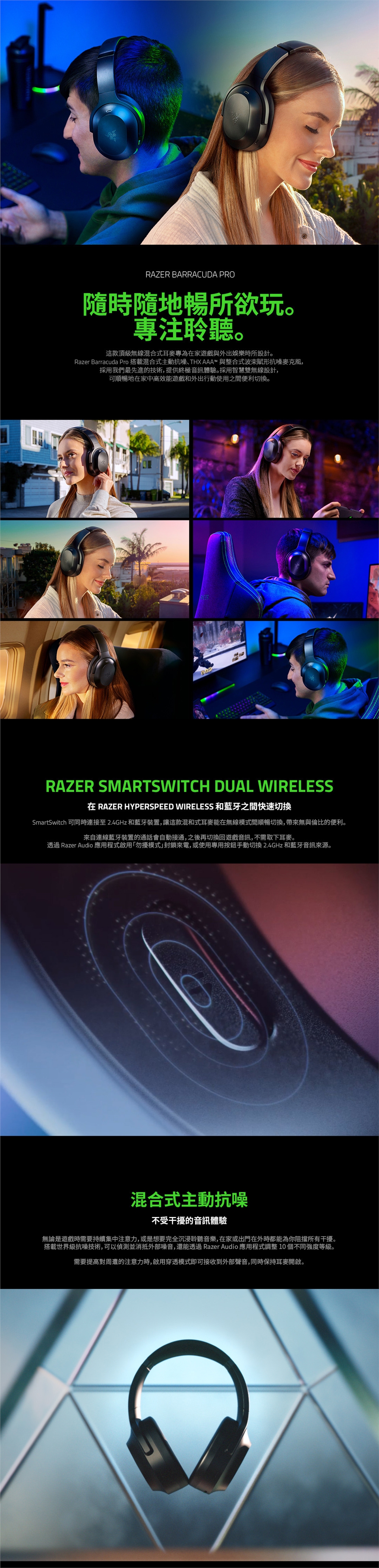 ★ RAZER BARRACUDA PRO 隨時隨地暢所欲玩。專注聆聽。