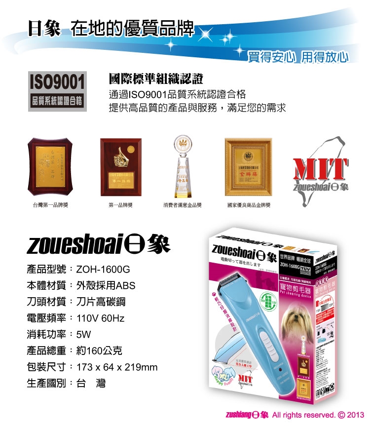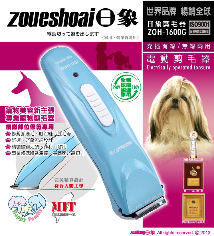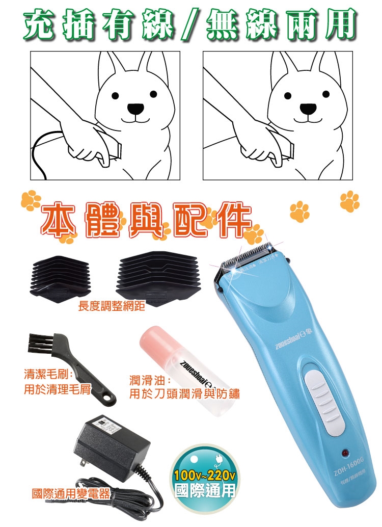 日象 藍光寵物剪毛器充插有線/無線兩用 ZOH-1600G