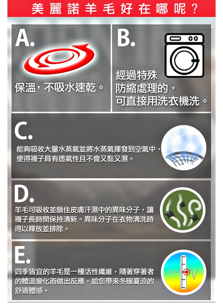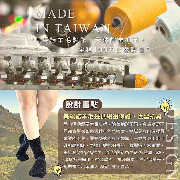 ● 頂級美麗諾 Merino羊毛製作,天然除臭抑菌。