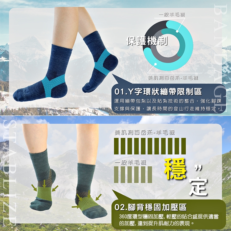 ● 頂級美麗諾Merino羊毛抗震底中統運動襪/登山襪。