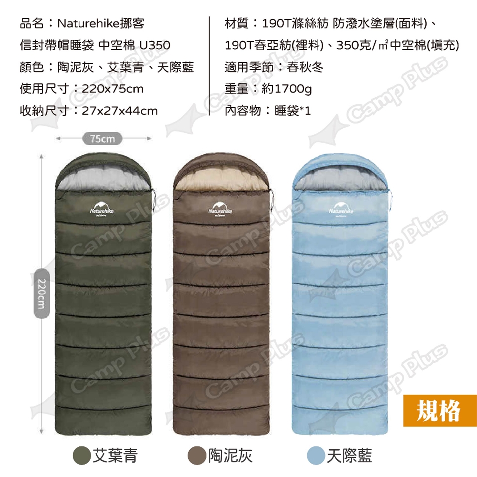 【悠遊戶外】Naturehike 挪客 信封帶帽睡袋 中空棉 U350 三色