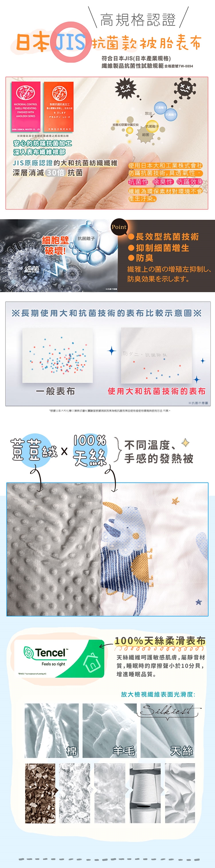 被胎表布 : 100%聚酯纖維(日本大和抗菌技術)