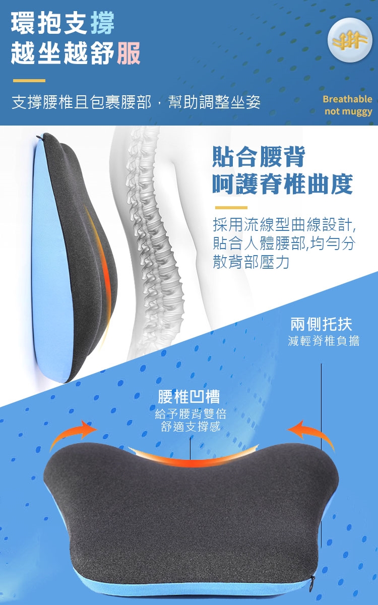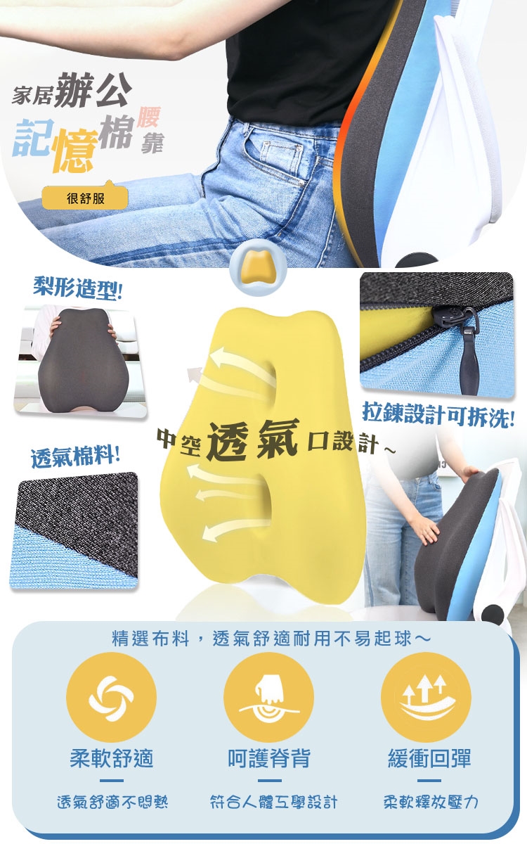 商品名稱:梨形人體工學透氣記憶棉腰靠枕墊
