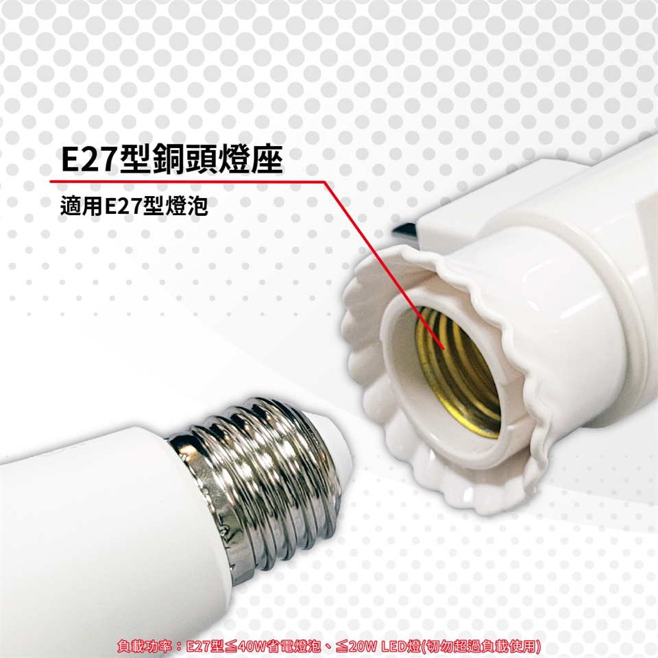 插頭設計,即插即用,適用所有E27型燈泡(請勿超過負載使用)