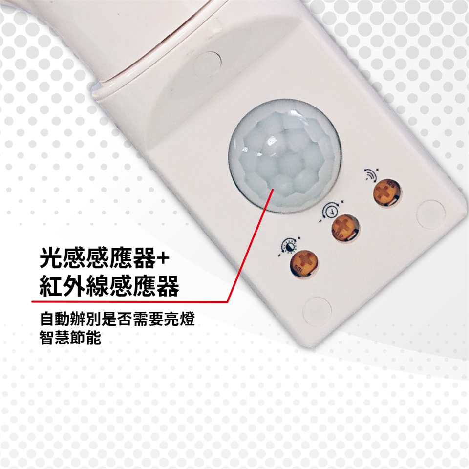 DIY設計,安裝簡單,無須配線。光控+紅外線感應設計人員接近自動開燈,離開後自動關燈,通電亮燈時間可調整。