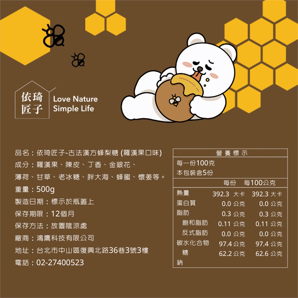 ☑️ 潤喉升級款羅漢果蜂梨糖-超大容量500g
