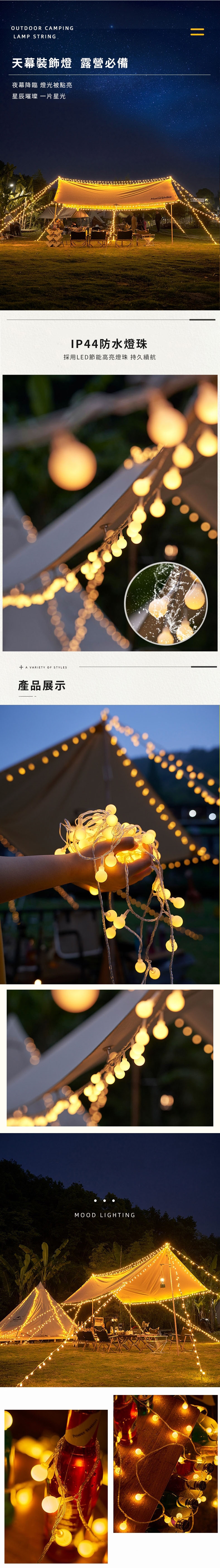 圓球燈串戶外防水,露營使用不怕雨水