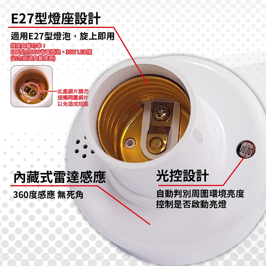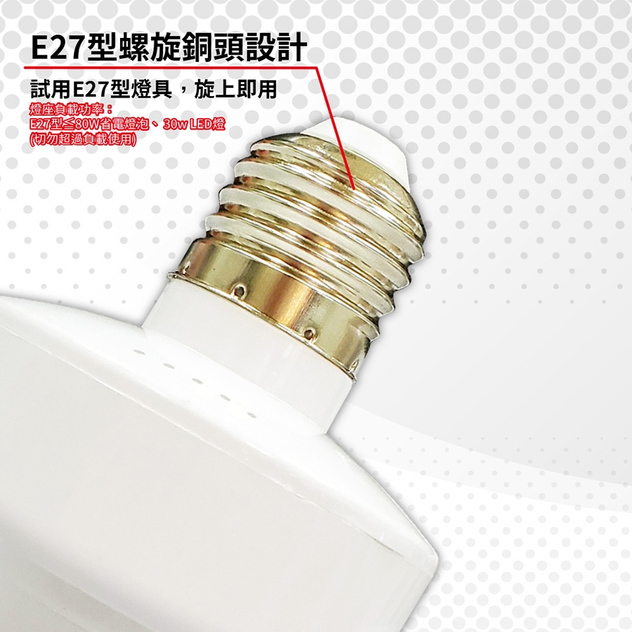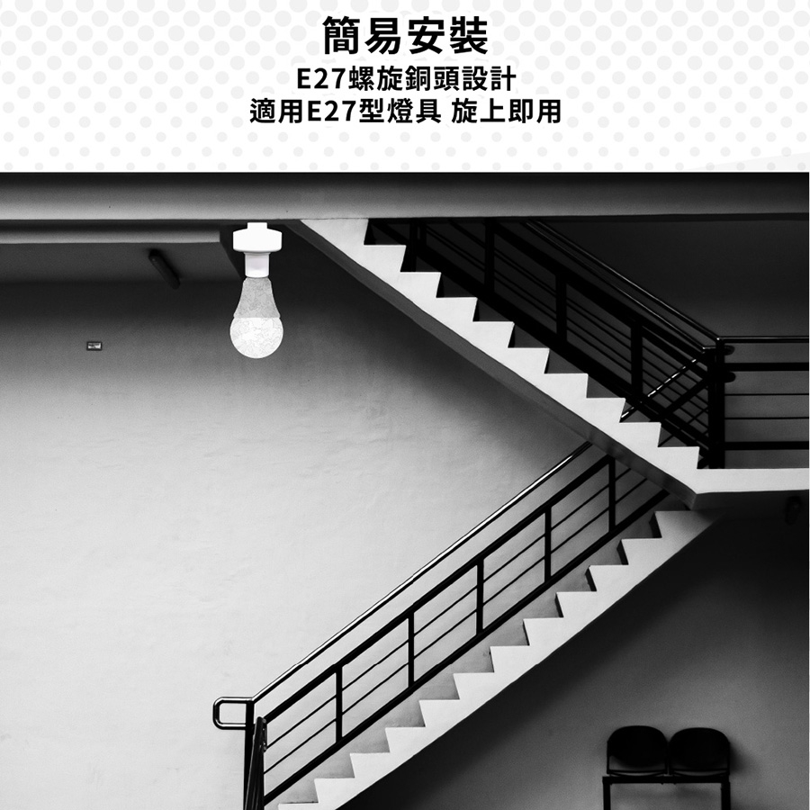 安裝簡單無需配線,適用各E27銅頭型燈泡:LED燈泡,省電燈泡…等。