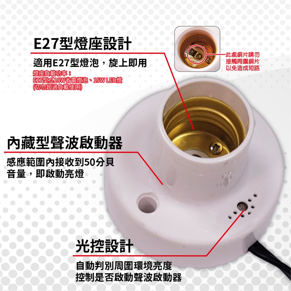 ●燈座接收聲波啟動分貝為50分貝。