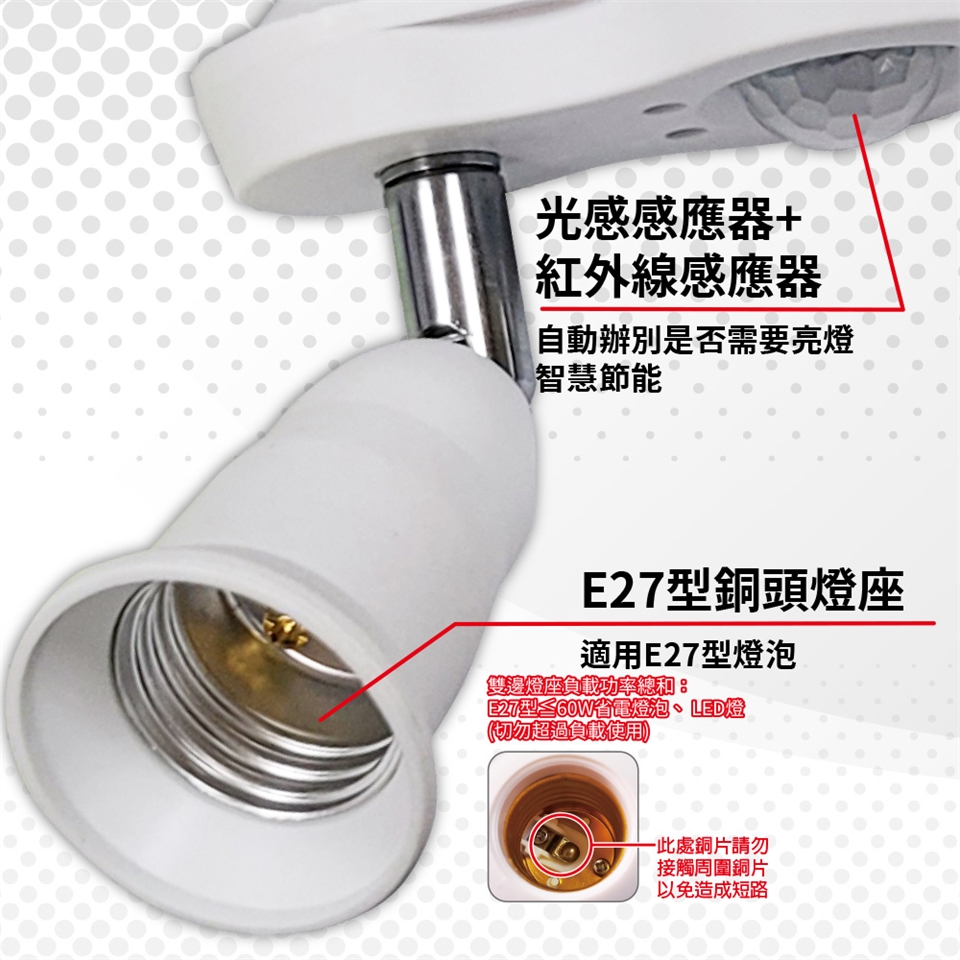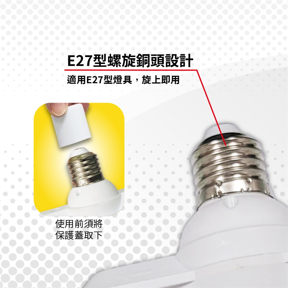 適用E27銅頭型燈泡,如LED燈泡、省電燈泡。