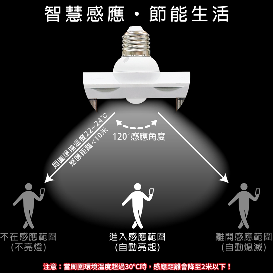 感應距離<10米(22~24℃),超過24℃靈敏度會降低