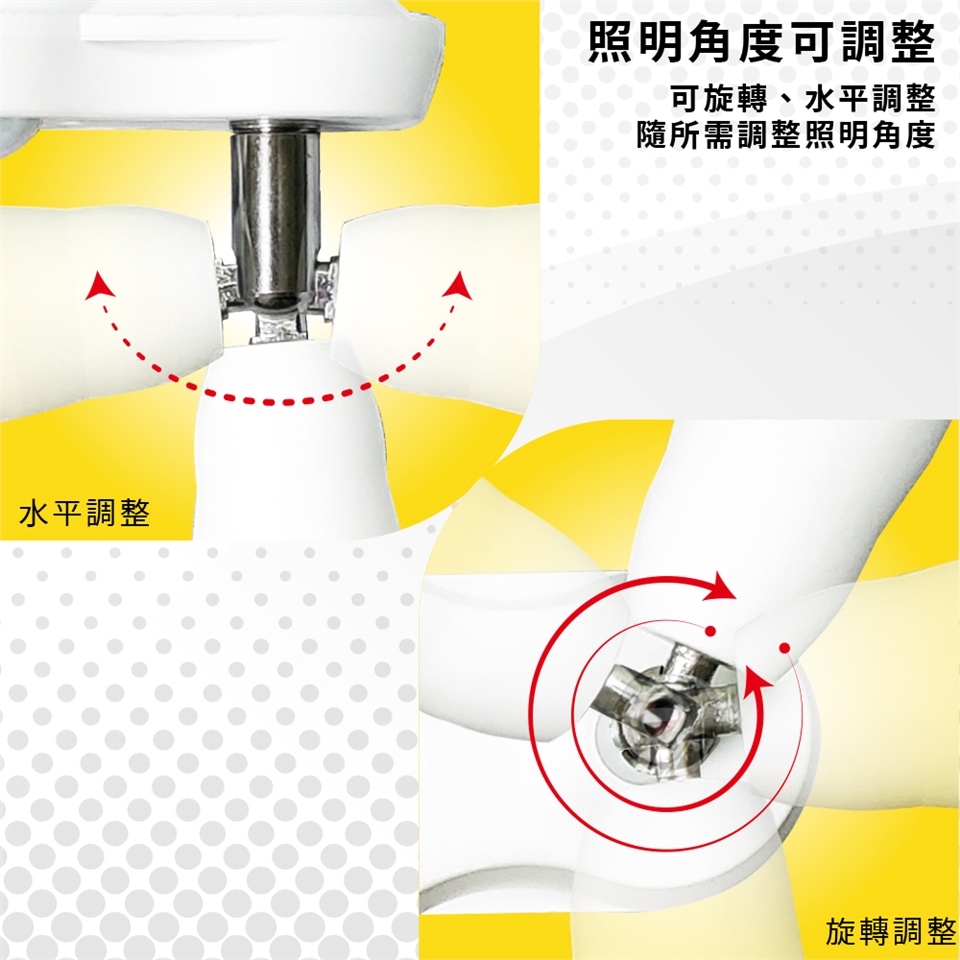 簡易安裝,兩邊燈座可依需照明角度而隨意調整方向。
