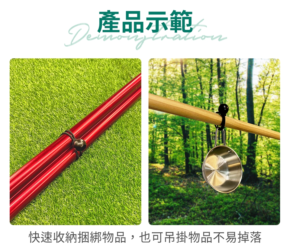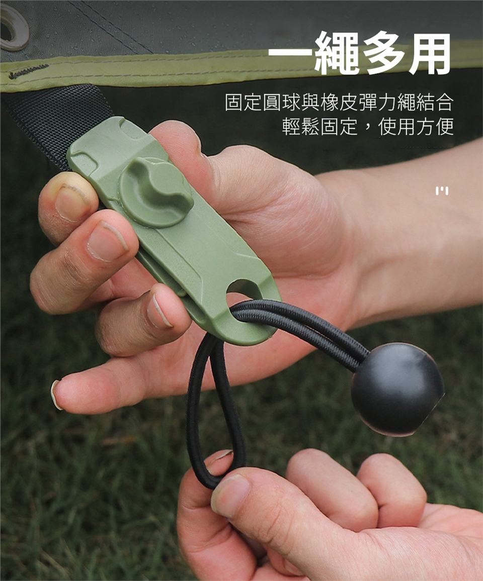 LIFECODE-彈力束球-14cm(12入)-黑色 多用途彈性束球,快速收納的小工具 超強彈力束繩,可收納營柱或是吊掛物品 可快速束緊或鬆開,操作簡單 商品說明: ◆ 捆綁、固定、吊掛,多用途。 ◆ 一個好用的小工具,可快速綑綁營柱或是條狀物、立柱狀物。 ◆ 利用彈性繩伸縮特性加上固定圓球的搭配組合,快速綑綁或是鬆綁。 ◆ 可捆綁營柱、吊掛燈具、外帳固定用拉繩。 ◆ 外帳或天幕上有個鐵圈,可將彈力束球穿進去,球頭卡在鐵圈上,彈性繩可拉出釘在地上,方便外帳拉出水線。 商品說明: ◆ 材質:外:織套 + 內:優質 橡膠 / 球頭:PP塑料 ◆ 尺寸:14 cm ◆ 重量:17 g (單一個) ◆ 保固:新品保固14天,商品若有瑕疵,請於鑑賞期7天內反映,一經使用恕無法辦理退貨 ◆ 若需退換商品請保持商品,配件全新完整及原包裝的完整性 |