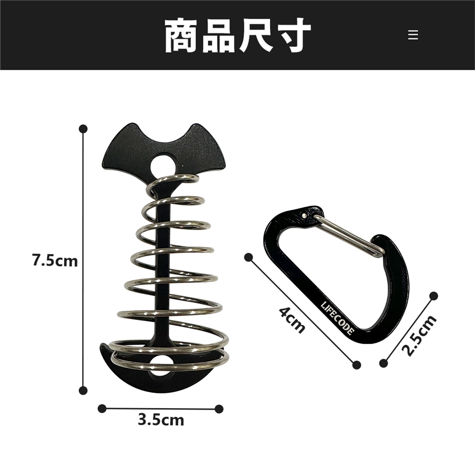 ◆ 材質:魚骨地釘+D型扣:鋁合金/彈簧:不鏽鋼