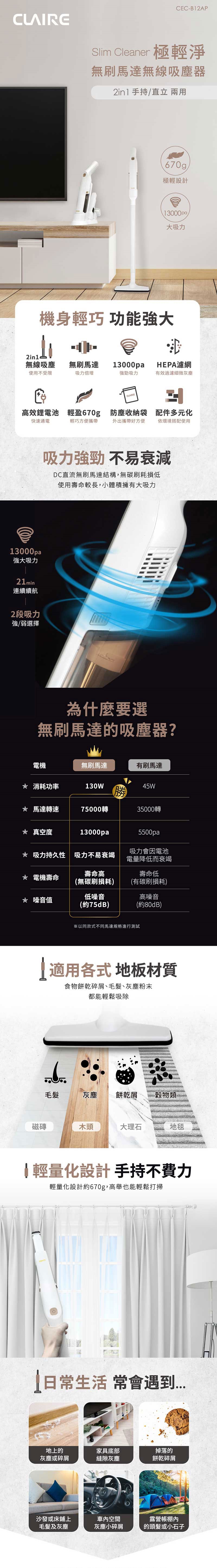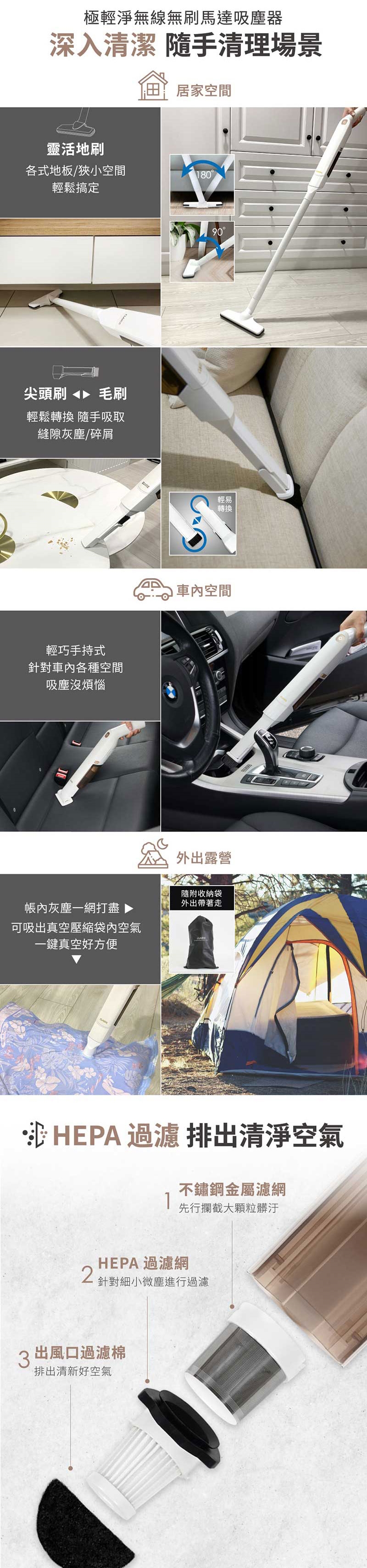 ◆2in1手持/直立兩用吸塵器,無線吸塵不受限。