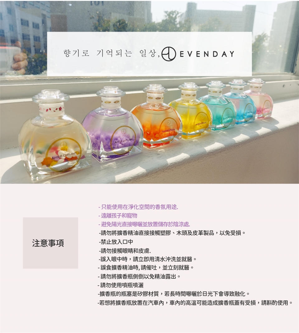 1.僅供室內芳香使用。2.如有不適,請立即暫停使用。3.避免接觸眼睛。4.請勿讓擴香精油液直接與傢俱或衣物接觸。5.遠離火苗。6.置放在兒童和寵物接觸不到的地方。7.不能食用。