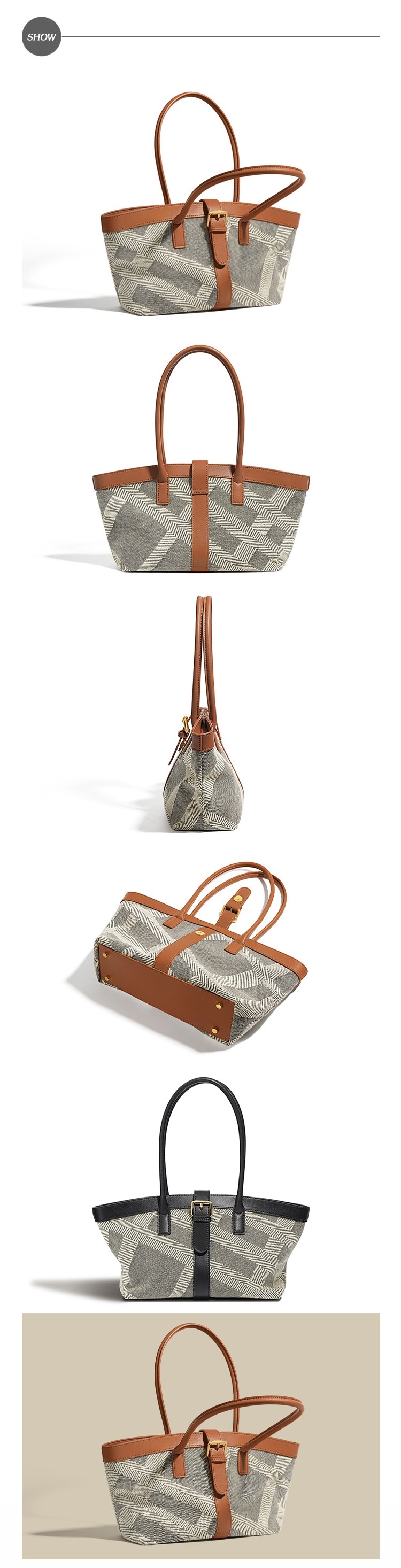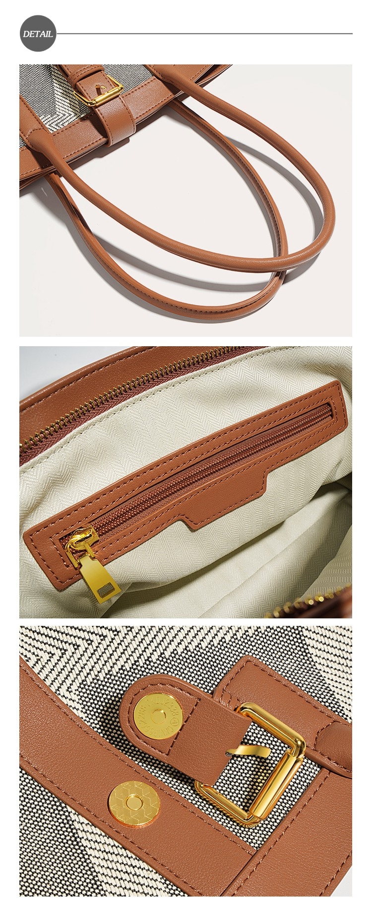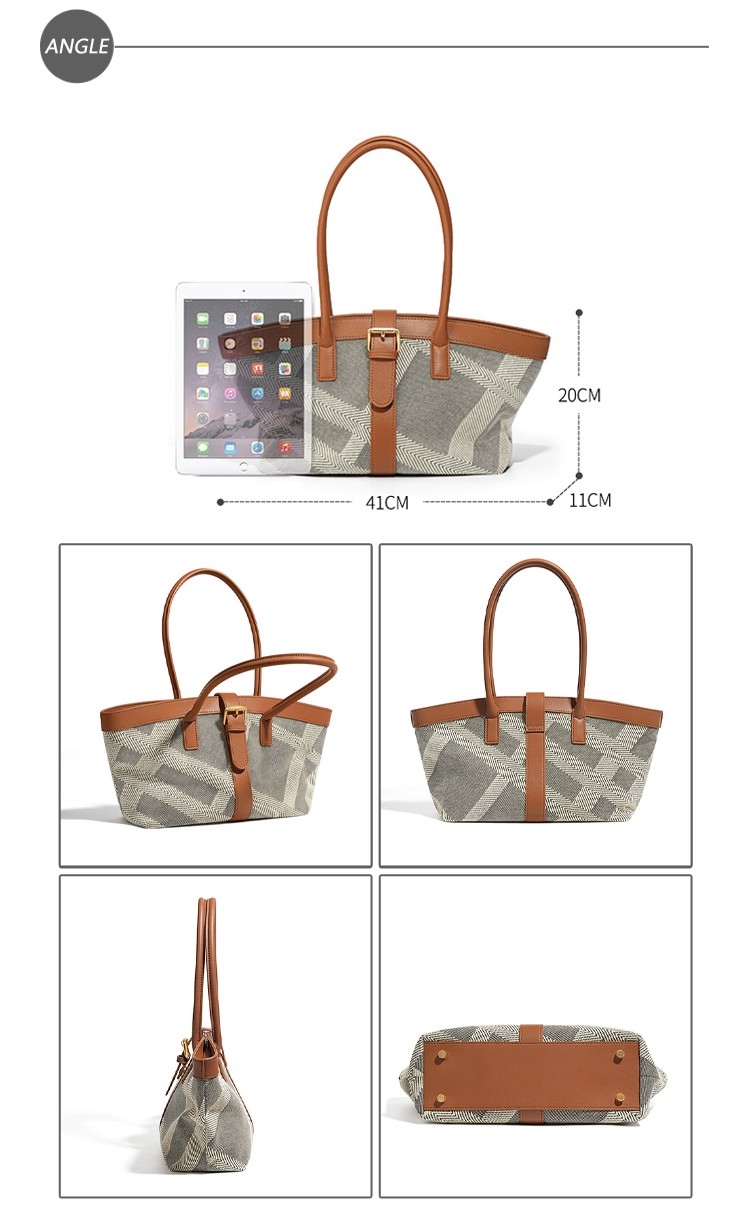【felix】真皮牛皮拼接帆布通勤單肩手提托特包 (2款任選)