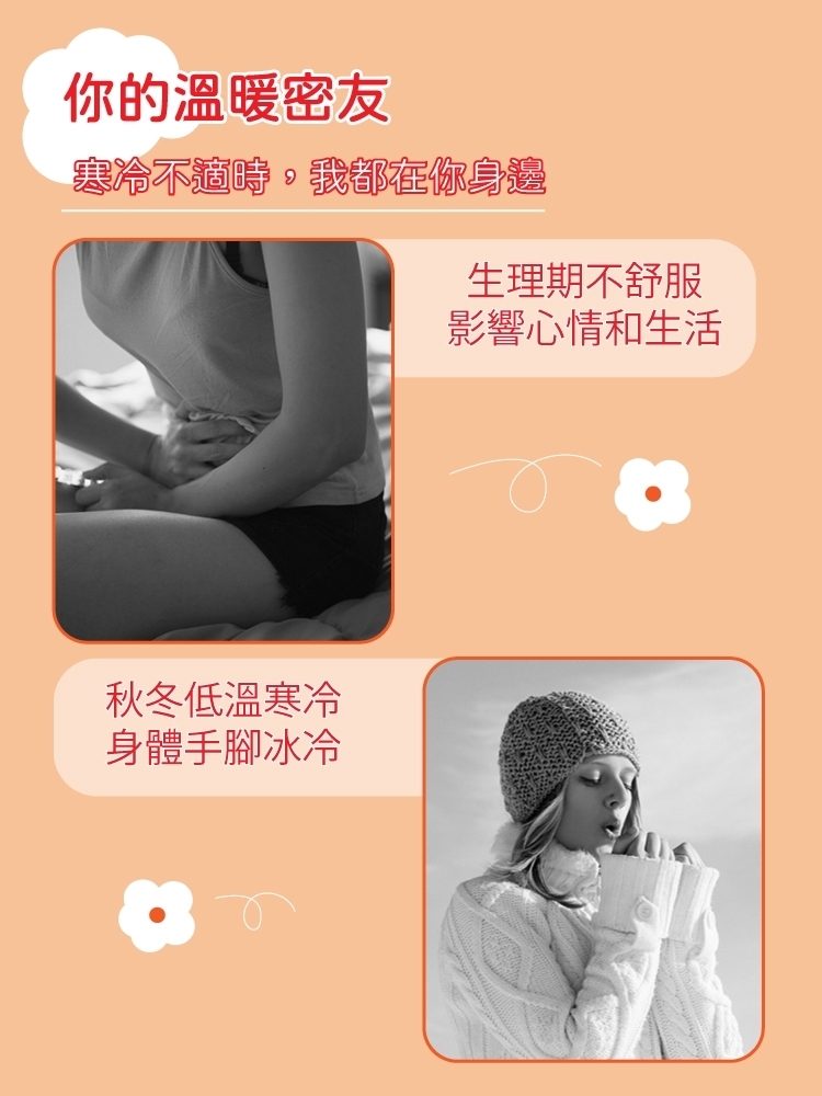 ・使用前從袋中取出,輕輕搖晃數次,將其覆蓋在衣服外或以布包裹使用,勿長時間直接接觸皮膚。