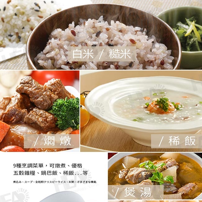 ◎9種烹調菜單,可燉煮、優格、五穀雜糧、鍋巴飯、稀飯...等