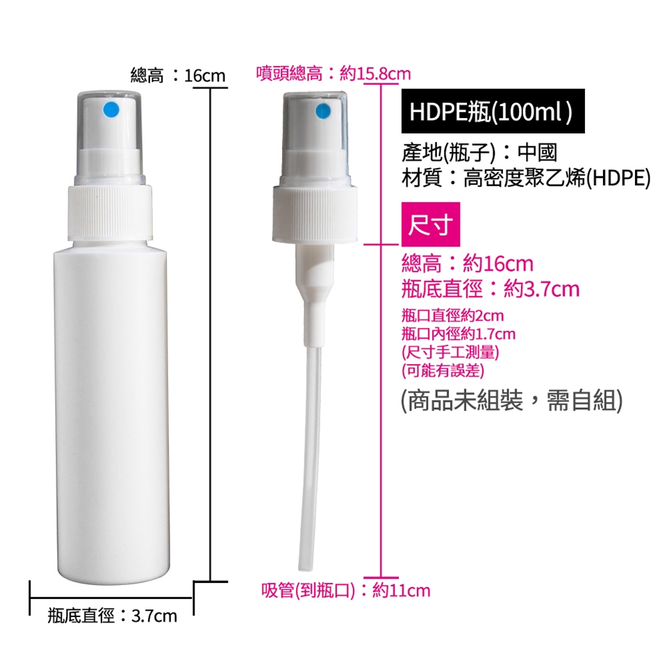 噴頭跟空瓶是分開的,沒有組裝,請自行組裝
