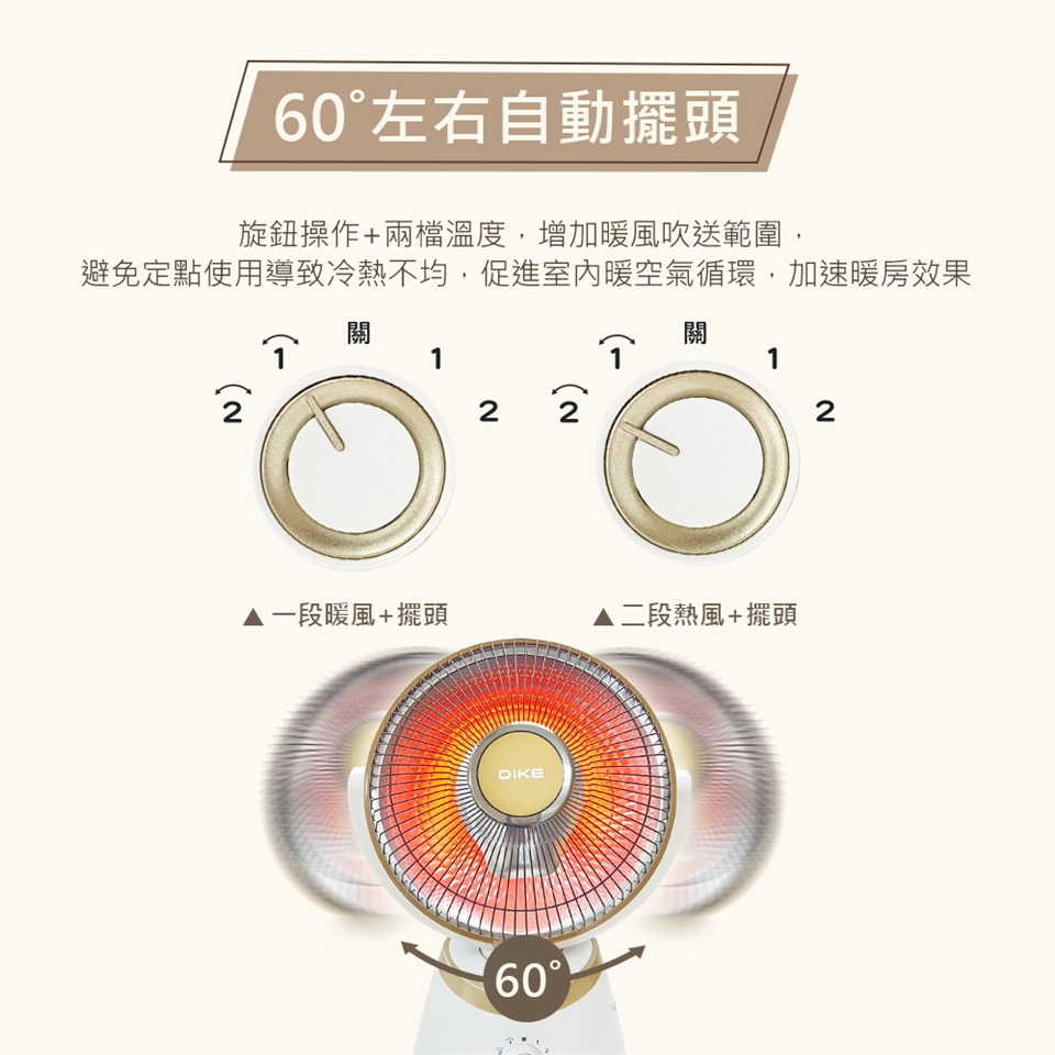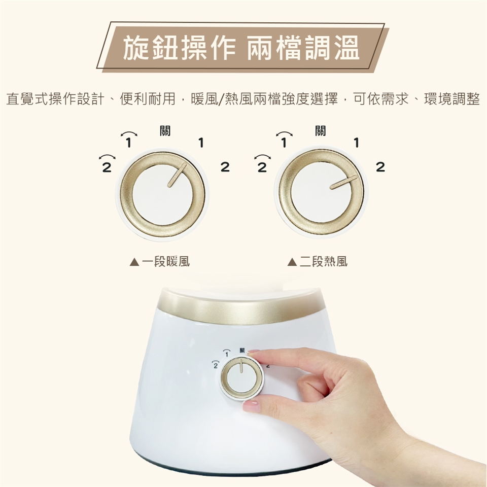便利旋鈕控制,600W加熱功率,可依需求選擇暖風/熱風