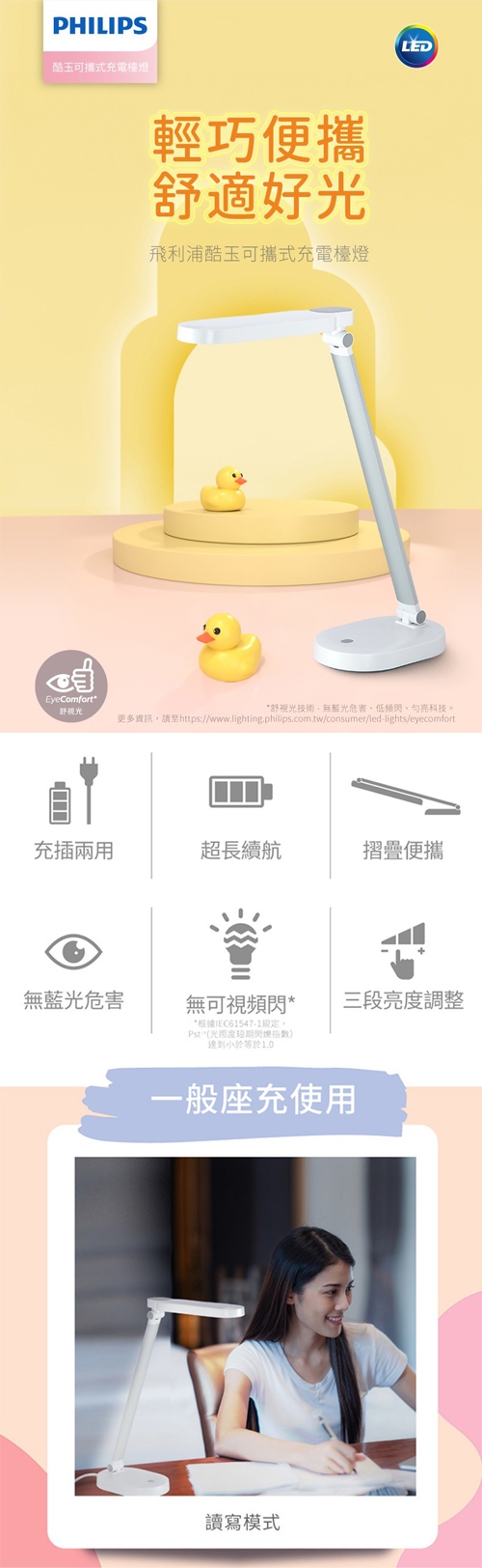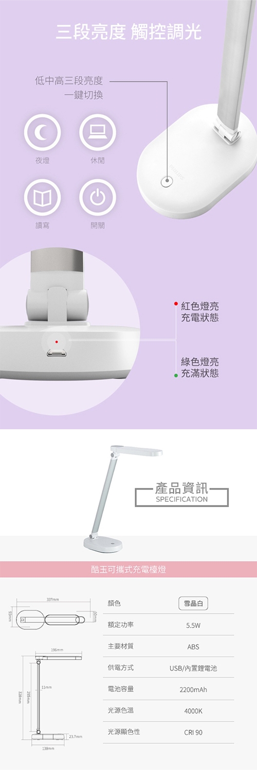 ★ 可調整三段亮度(夜燈、休閒、讀寫)