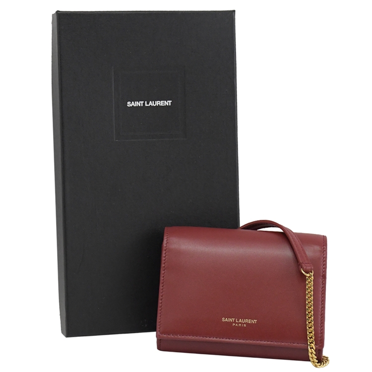 SAINT LAURENT YSL 專櫃熱賣小廢包、斜背短夾系列,採用YSL燙金LOGO與質感小牛皮材質,釦式開口,內4卡片夾層+2貼袋+1拉鍊袋,超迷你斜背包款,亦可拆除背袋做短夾使用,經典牛皮觸感,高雅耐看的必備單品,美觀又實用。