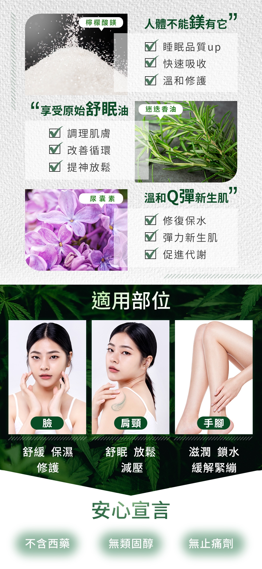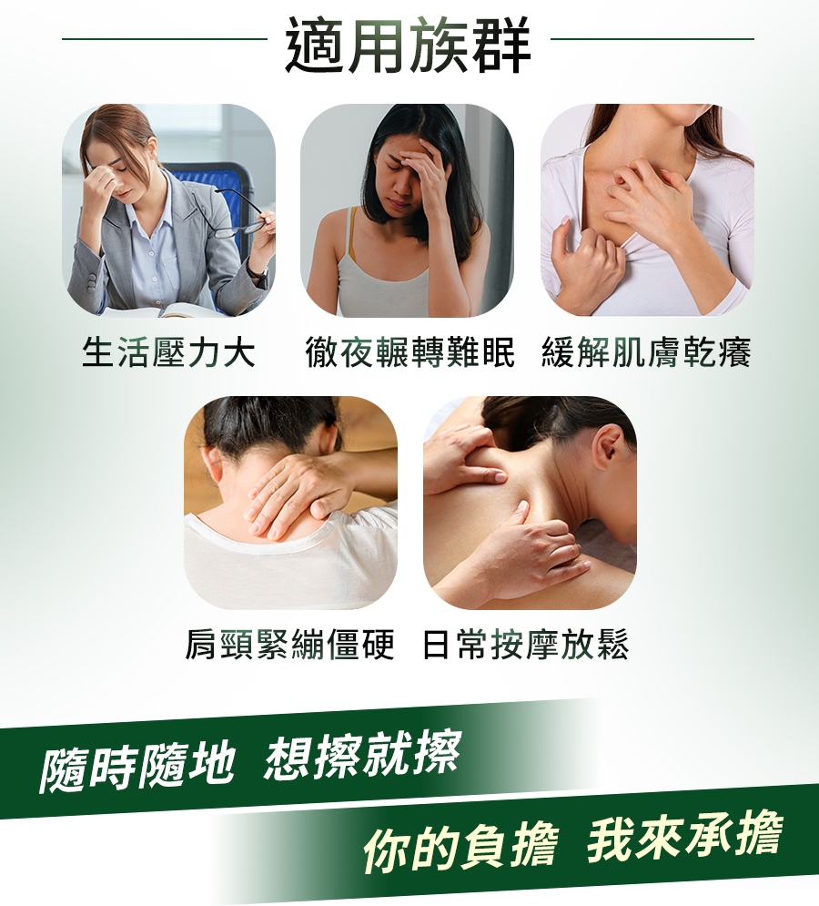 可塗抹於全身肌膚,搭配按摩提升吸收,無需清洗