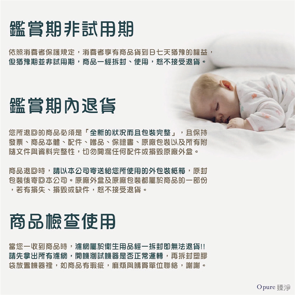濾網耗材一經拆封或試用即無法退貨,如需退貨,需負擔耗材費用