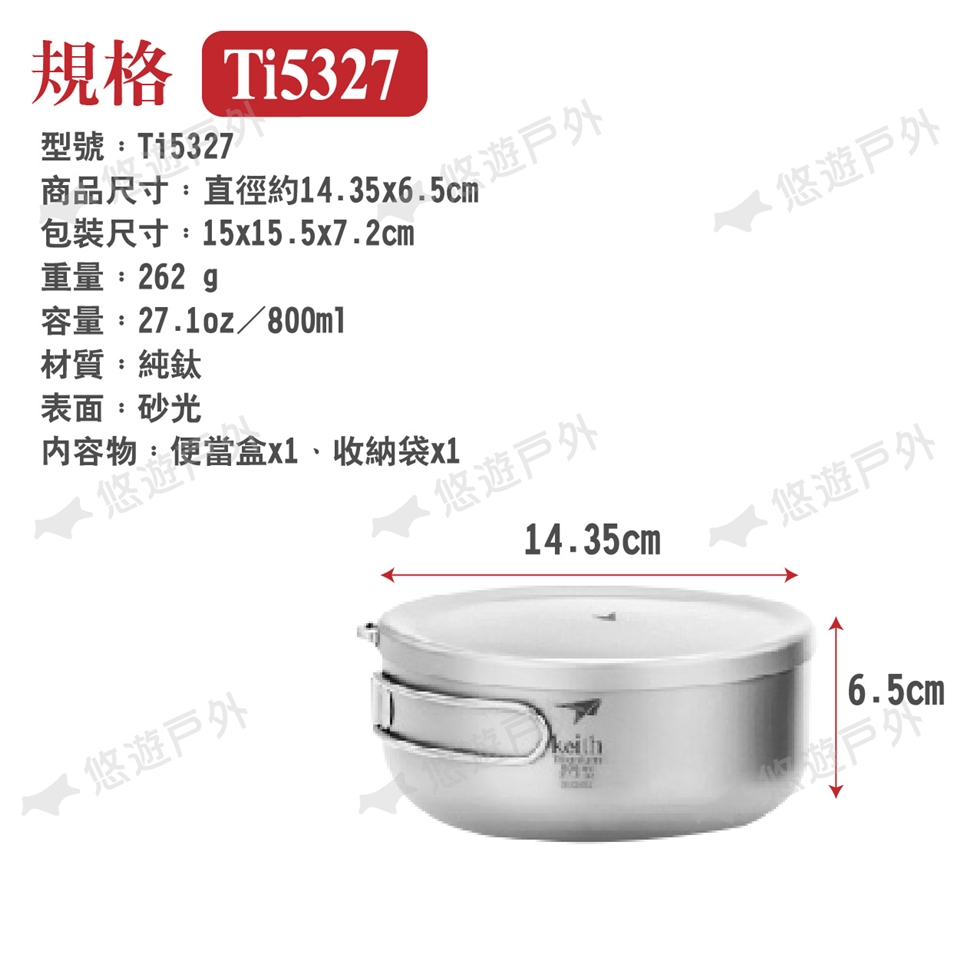 【悠遊戶外】Keith 鎧斯 純鈦輕量環保圓形便當飯盒800ml