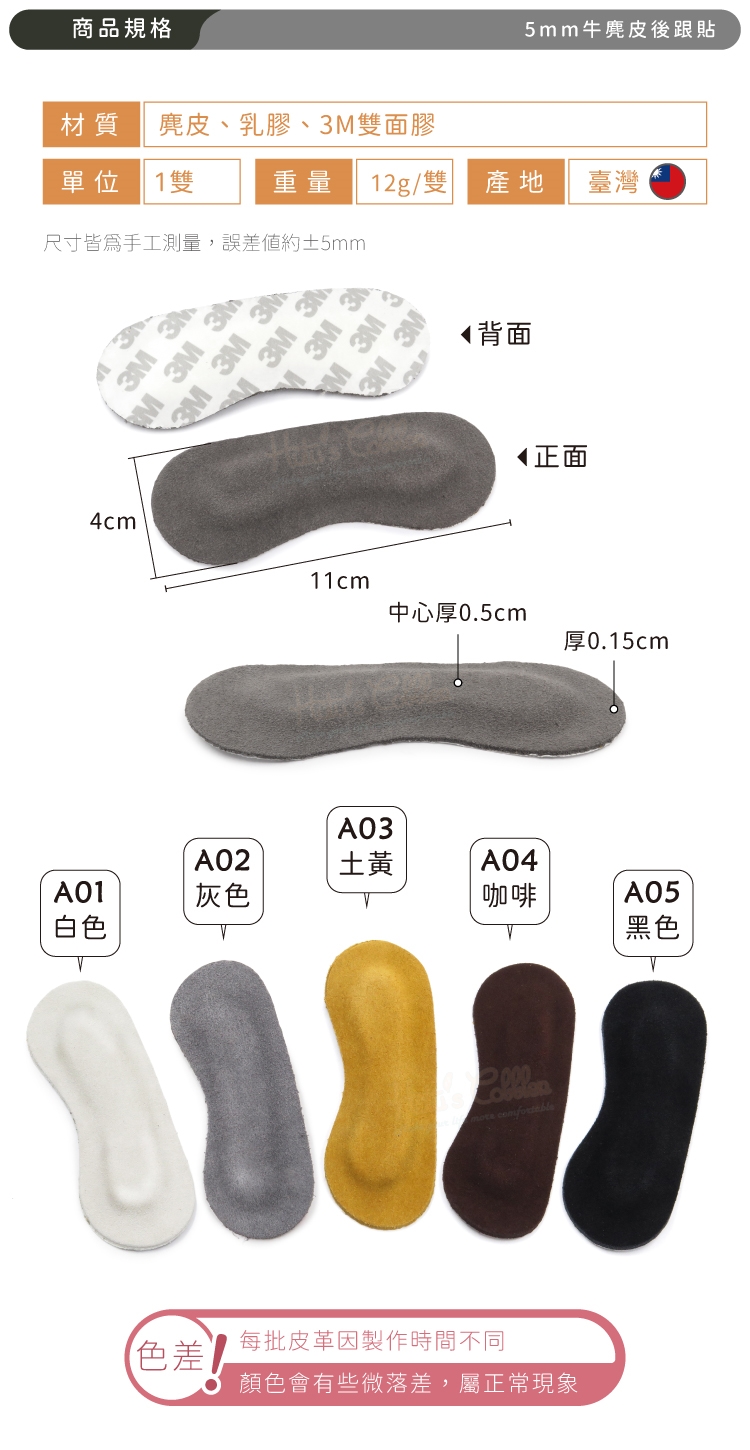 5mm牛麂皮後跟貼細節: