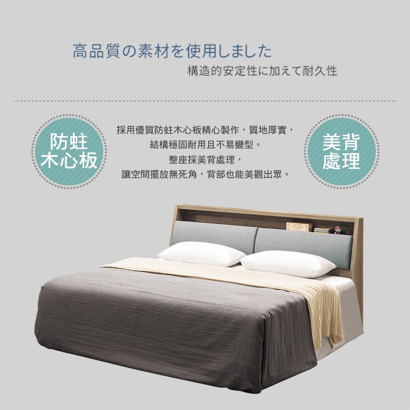 床底選用六分木心板材,堅固耐用,讓您乘睡時更加安心,睡得更加安穩!